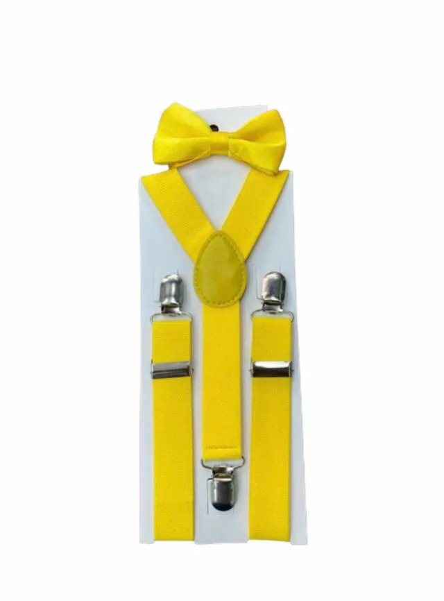 Manter seu filho elegante em qualquer ocasião é uma tarefa fácil com o Kit de Suspensorio e Gravata Borboleta Amarela Infantil.