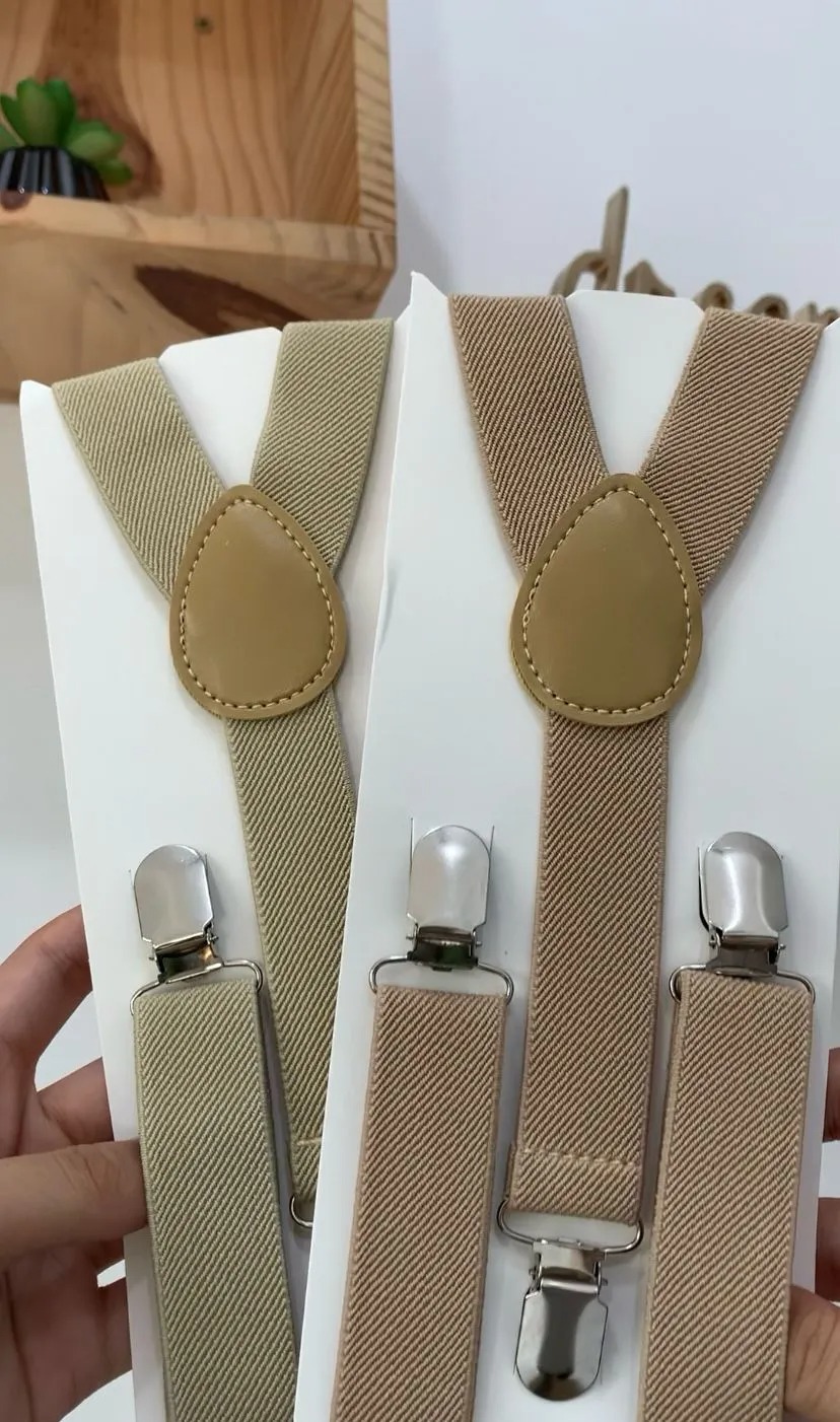Os pajens normalmente usam suspensórios em ocasiões especiais, como casamentos ou aniversários. O suspensorio bege infantil é a escolha ideal para integrações em temas diversos. Ao planejar a vestimenta do seu pajem, não hesite em considerar este acessório como parte do conjunto.