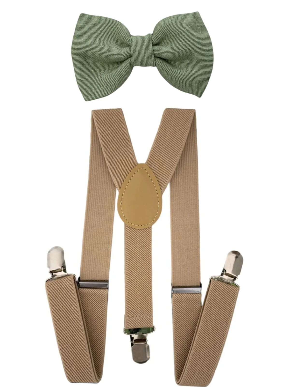 Ao optar pelo Kit Suspensório e Borboleta Bege e Verde Oliva, é importante lembrar que ambos devem harmonizar com o restante do visual. Aqui estão algumas dicas: